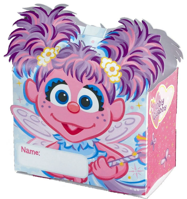 These Abby Cadabby Treat Boxes (6 count) are made of cardboard with that adorable ‘fairy-in-training’ Abby Cadabby on both sides and a special place for your guests’ name. Treat Box measures approximately 6.25″ wide x 6.5″ high x 2.5″ deep. Look for fun treats to fill these boxes (sold separately and as part of a Party Favor Kit). This product is officially licensed by Sesame Workshop®, Sesame Street®, and associated characters, trademarks and design elements are owned and licensed by © 2007 Sesame Workshop. All Rights Reserved.