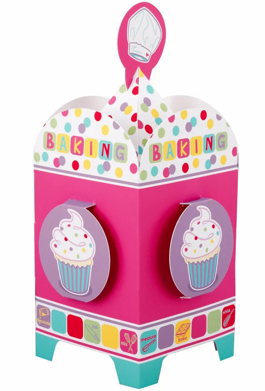 Baking Bash Centerpiece have cupcakes and dots all around this 4 -sided cardboard centerpiece. Adult assembly required. Look for matching foil balloon and party supplies (sold separately).