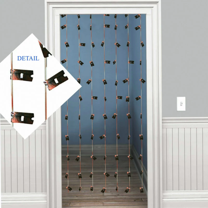 Package includes (1) paper and plastic door curtain that features 7 strips with 11 paper razor blades on each strip. Measures approximately 78″ high. Don’t forget the Sticky Tack (sold separately) for easy hanging.