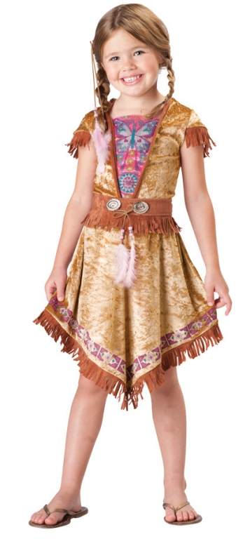 Costume includes:Dress, belt with detachable accents, and hair clip with beads and feathers.