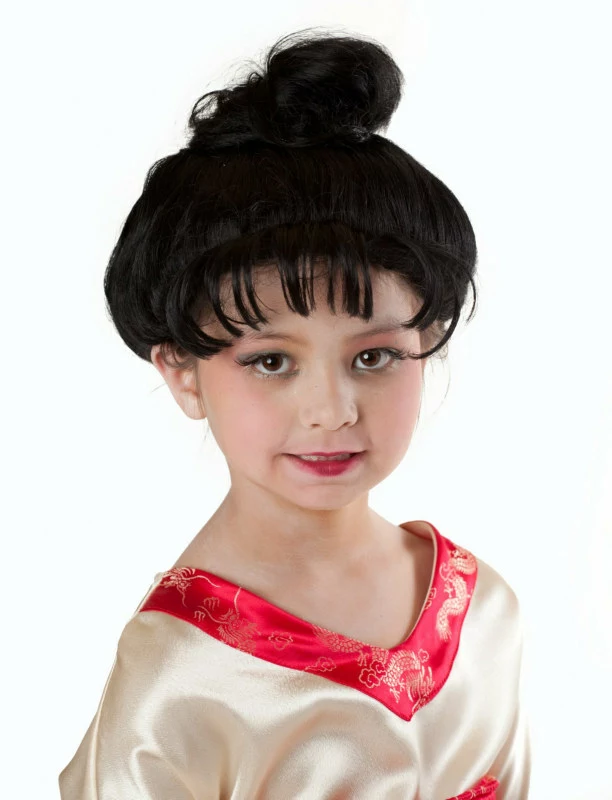 Make sure your Little Tea Princess has the complete look with this wig! Featured with our Kimono Princess Child Costume, the Kimono Princess Child Wig features a black up-do style with a bun on top and short bangs.