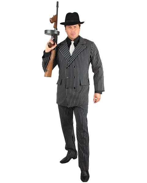 Tony Soprano won’t have anything on you when you wear this Mafia Male Adult Costume for men. This slick looking wise guy outfit features a black and white wide stripe 6 button double breasted jacket with matching pants. No self-respecting Mafioso would be seen in public without their trademark black fedora, sleek black shirt, oxford shoes, and of course your “piece” is part of every ensemble. This one size fits all Mafia costume will comfortably fit men in chest size 48 to 52. You’ll want to shop Wholesale Costume Club wide range of accessories to find suitable shoes, shirt, and weaponry to accessorize this costume that will be a huge hit at your next costume ball, masquerade party, or a seedy underworld Halloween bash. Get this great outfit at Wholesale Costume Club, where you’ll find the greatest selection of costumes and accessories on the internet at the lowest prices.