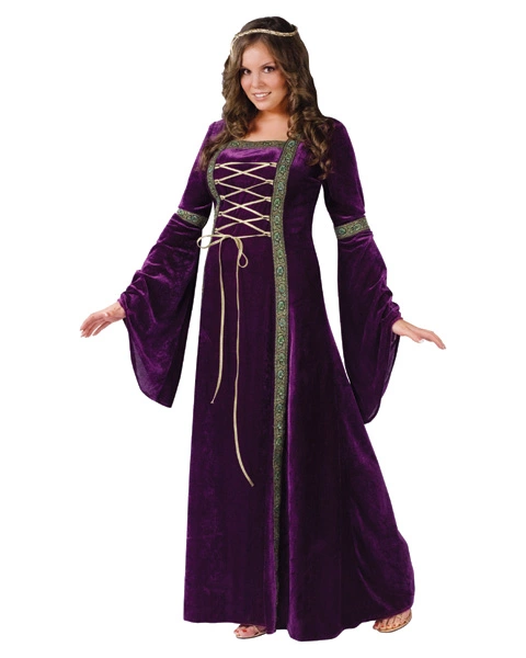 Dressing up for Halloween doesn’t always have to be spooky. There’s going to be a ton of witches and ghouls out there this year, so why not add a bit of class and charm to make sure that you get the attention that you’re so deserving of? And there’s no better way to do it than in our enchanting Renaissance Lady adult plus size costume that is sure to turn heads at any party (or Renaissance Festival) that you deem worthy of your presence! This elegant costume features a deeply regal purple gown with classic green brocade trim รยข?” now that’s pretty Renaissance isn’t it? The gown laces up in front with lovely gold ribbon detail and the sleeves are truly old world inspired with their wide flowing cuffs. This costume is beautiful as is, but if you want to embellish it with some added flair, check out our accessories department for some fun and royally inspired ideas! * Includes velvet lace-up dress with ribbon trim