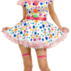 Includes dress, leg ties, choker, and arm covers. Does not include wig or shoes. Available in adult sizes Small, Medium, and Large.